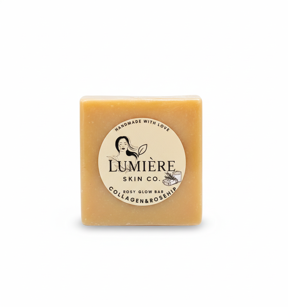 Reveal your skin’s natural radiance with our Collagen Rosehip Bar, a delicate blend of collagen, rosehip oil, and pink clay. Collagen helps support skin elasticity and a youthful appearance, while rosehip oil, rich in vitamins A and C, nourishes and brightens. Pink clay gently draws out impurities while leaving skin soft and refreshed. Balanced with rice bran oil, shea butter, and other moisturizing oils, this creamy bar cleanses without stripping, making it perfect for daily use. Lightly scented with a soft rose aroma, it’s a soothing and elegant addition to your skincare routine.