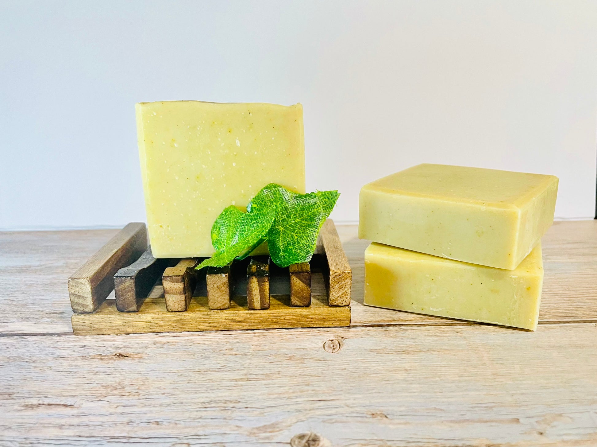 Ingredients: Grass-Fed Tallow, Olive Oil, Sunflower Oil, Coconut Oil, Shea Butter, Castor Oil, Turmeric Powder, Sandalwood Fragrance ( Essential Oil), Distilled Water, Sodium Hydroxide (saponifying agent – none remains after curing)